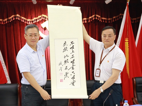 會上,陳館長向中智公司贈送陳云同志的 “不唯上、不唯書、只唯實(shí),交換、比較、反復(fù)”15字訣的親筆手跡卷軸。